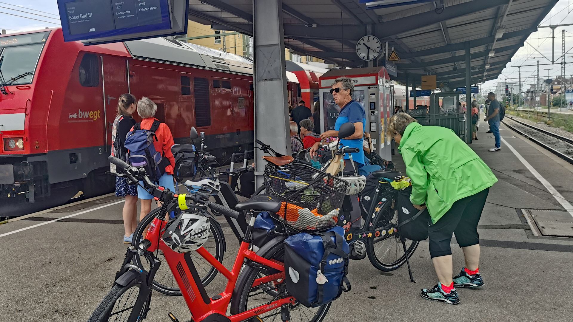 Leider wieder Zugsausfall Friedrichshafen-Lindau, in Friedrichshafen hat es keinen Aufzug bzw. Lift, in Planung bis 2025, Dank Zugsausfall doppelte Menge Personen im überfüllten Regiozug, dann noch unsere und andere Fahrräder .... ein Chaos, auch Dank dem 9.- €-Ticket, das ein durchschlagender Erfolg bedeutet ...!