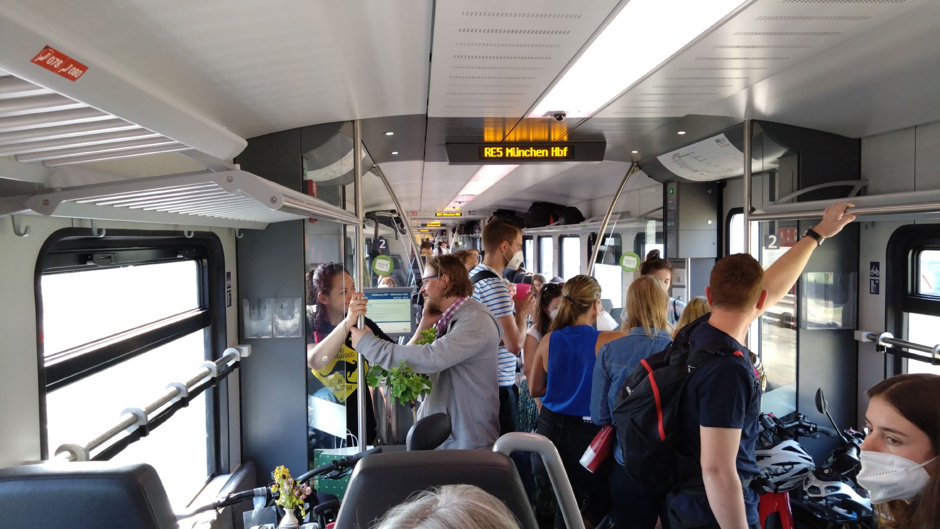 Von Salzburg dank früher am Bahnsteig eintreffend konnten wir die 4 Fahrräder problemlos verladen, danach wieder Chaos im Regionalexpress-Zug.